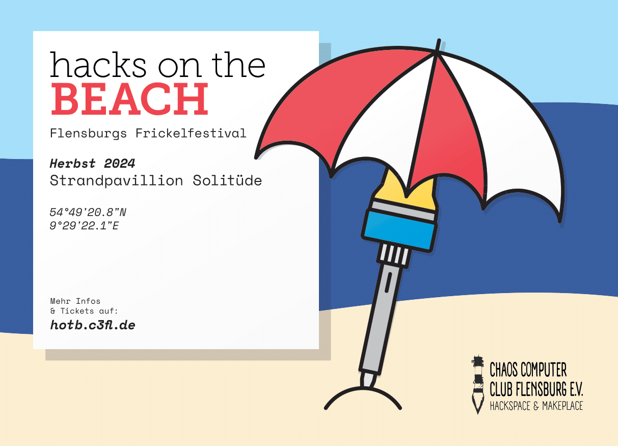 Hacks on the Beach ist ein kleines Hack- & Frickelfestival direkt an der Flensburger Förde. Zum vierten Mal kannst du ein ganzes Wochenende mit Meerblick an deinen und anderen Projekten arbeiten.